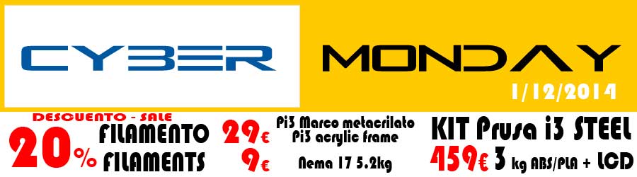 Cyber Monday – Descuentos y ofertas el lunes 1 de Diciembre 30 noviembre, 2014 / Impresión 3D / 1 minuto de lectura Cyber Monday – Descuentos y ofertas el lunes 1 de Diciembre Ver más +